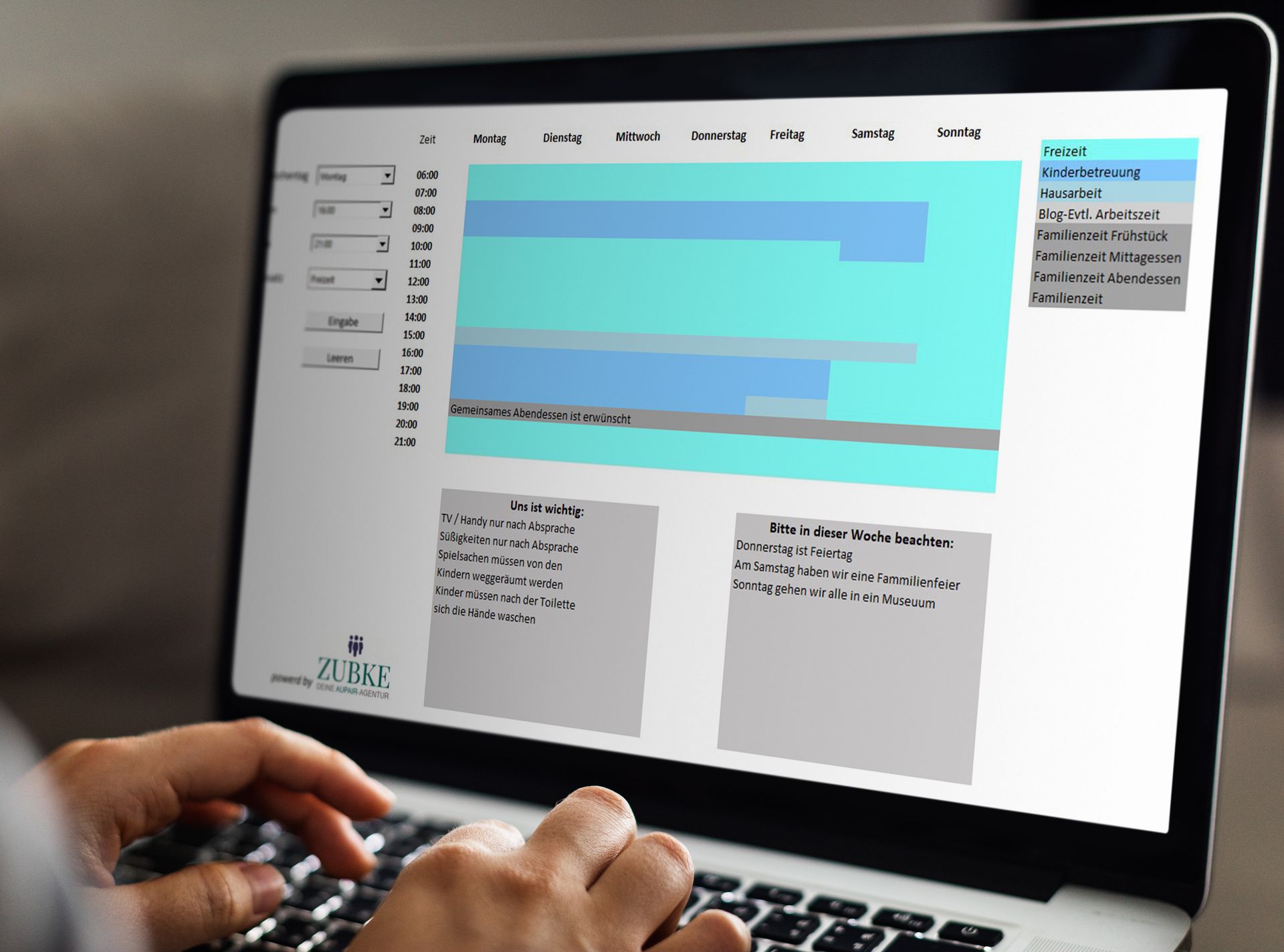 Wir hoffen, dass dieses Werkzeug Ihnen hilft, die Planung der Arbeitszeit für AuPairs zu erleichtern und effizienter zu gestalten. Ihre Zufriedenheit ist unser Erfolg, und wir sind immer bemüht, Ihnen die besten Ressourcen und Werkzeuge zur Verfügung zu stellen.